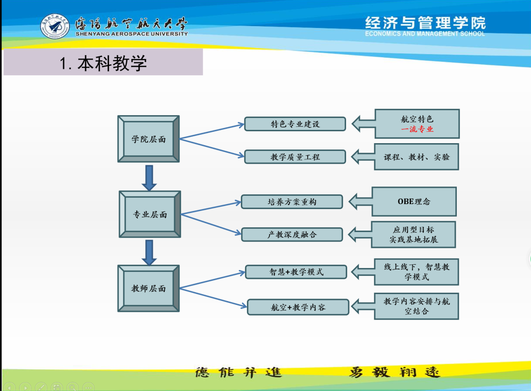 进一步明晰目标任务。提出了“专业有根基、学科有特色、学术有贡献、就业有质量”的学院发展目标:在本科教学中结合一流专业建设、课程革命和实践教学体系构建等方面提出了“学院-专业-教师”3个层级发展思路;在科研工作中提出了“依托平台,凝练团队,项目牵引”的建设任务。