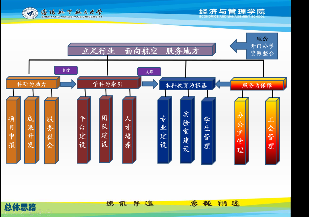 进一步凝聚发展共识。深刻领会高质量党建引领学院事业高质量发展的内涵,强化了“立足行业 面向航空 服务地方”的办学理念,明确了科研为动力、学科为牵引、本科教育为根基、服务为保障的发展思路。