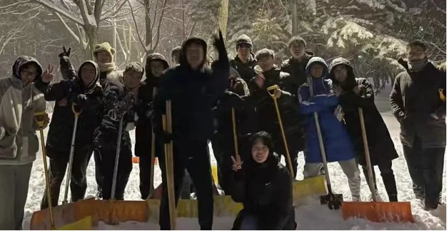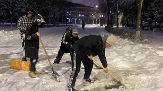 同时,同学们在雪天出行也要注意安全,避开路面浮冰,缓步慢行。道路湿滑,与校园里行驶的车辆保持距离。出入宿舍注意保暖,上下楼梯注意防滑。