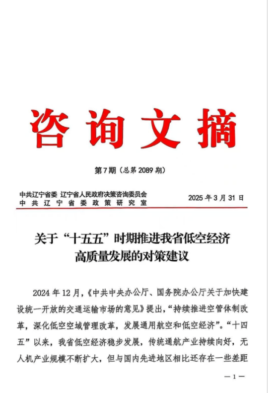 该成果是今年会在低空经济研究领域资政建议的重要成果,为辽宁省“十五五”低空经济战略规划布局提供了有力支撑,彰显了沈航的智库担当!