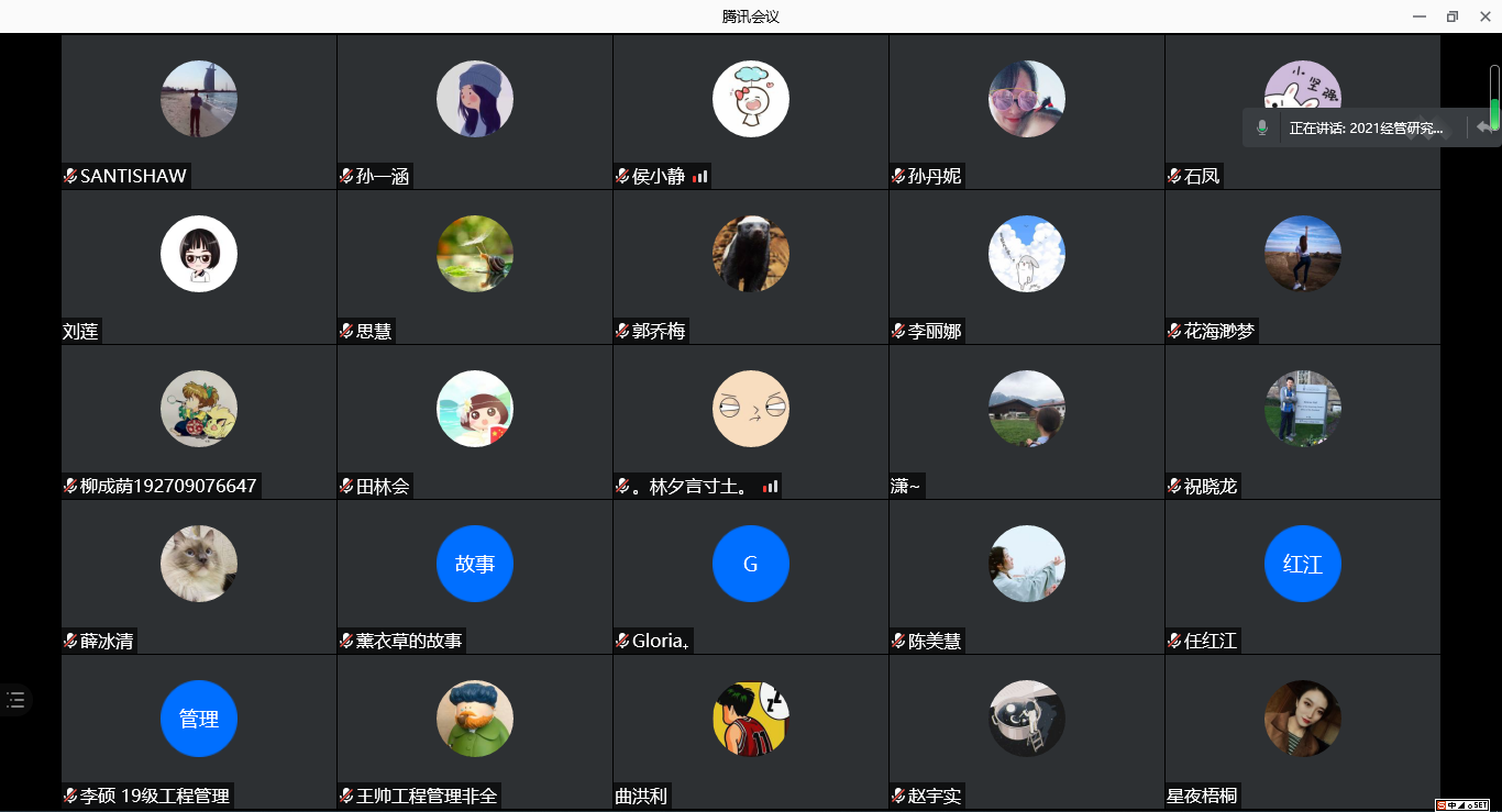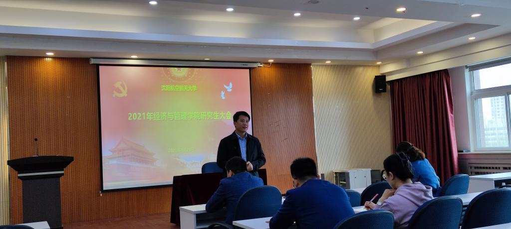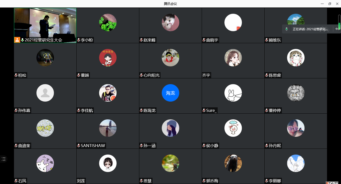 2021年4月23日上午10点,今年会官网在经管楼519召开研究生大会。院长荆浩、副院长唐金环、教学秘书毛薇、研究生辅导员郭瀚涛及19、20级全体研究生参加了此次会议。会议由副院长李作学主持。此次会议采取线上线下相结合的方式进行,为身在工作岗位未能到场的非全日制研究生进行同步直播。