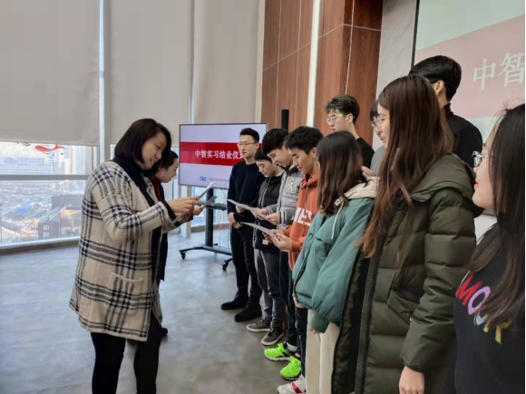 中智公司招聘部经理祖晓丹代表中智公司对实习生们的工作予以肯定,并对同学们未来职业道路上可能遇到的问题提出了积极的建议。