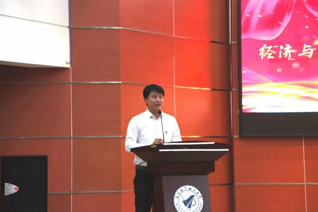 首先,院长荆浩发表新生入学典礼讲话。院长向2019级新生介绍了学院的基本情况、师资力量及各专业具体设置情况,并为同学们详细解读了学院针对不同专业的培养计划。院长在讲话中强调,每一个学生进入大学都要归零,要以从零开始的心态面对每一天的学习、生活和工作,这样才能改变命运、创造未来。他向2019级学生提出了殷切期望“一是希望各位学子大学四年不虚度光阴,努力提升自己的专业技能,发奋图强、开拓创新,成为经管精神的传承者,毕业之后成为社会认可的有用之才。二是希望同学们具有责任感与使命感,在大学时光不断充实自己,为未来的人生做好铺垫。”