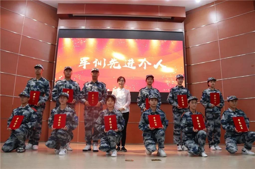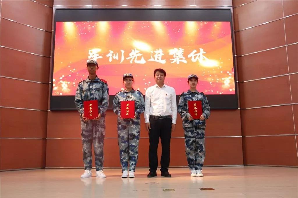 接下来,今年会对2019级新生军训先进集体、先进个人进行表彰。副院长李作学宣读表彰名单。荆浩院长和成丽副院长为先进集体代表以及先进个人颁发荣誉证书,希望2019级新生可以以他们为榜样,向他们学习。