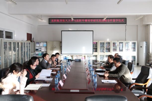 12月12日,沈阳航空航天大学和沈阳华睿科学研究院在经管楼402会议室举行了战略合作框架协议签字仪式。