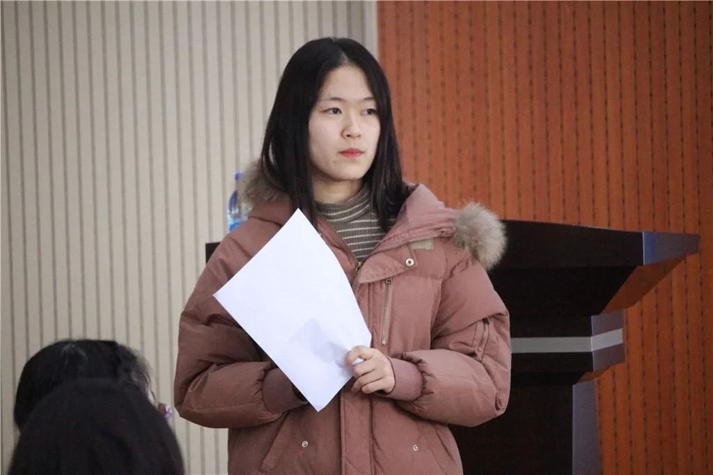 之后,刘宇老师发表致辞,她首先将自己的工作做出了简单总结,并从三个方面做出了介绍:科研小助手是老师的助推力,忘年交;图书馆可以利用大数据拓宽虚拟空间的无限想象力;科研小助手能为学生们带来知识上的增长,视野上的拓宽,并且是考研就业的极大助力。