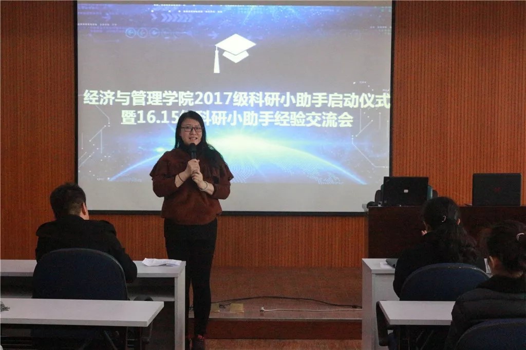 为培养学生实践创新能力,追逐“双一流”水平,将学科建设做强做精,实现创办研究应用型大学的目标,今年会官网11月7日于经管519召开了2017级科研小助手启动仪式暨16.15级科研小助手经验交流会,会议由学生代表易元鹏主持。