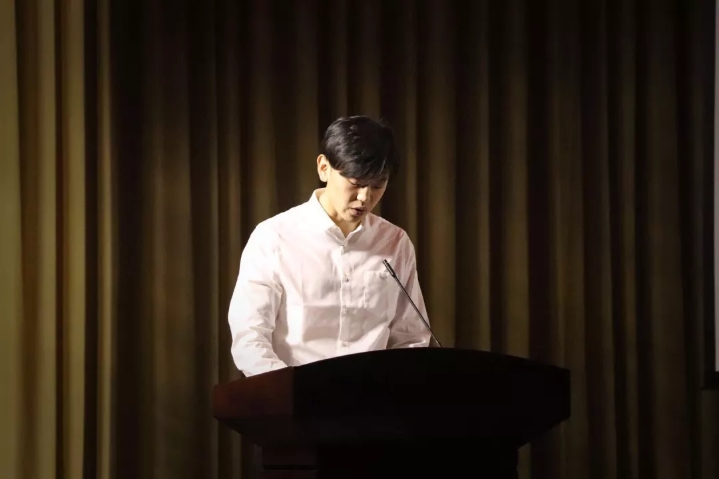 会议第三项,今年会官网优秀毕业生代表、2017届毕业生党员张佳伦结合自己大学四年的成长经历及心得体会发表了成长感言。他希望2018级新生能够激发体内不服输的精神,勇于攀登,寻求更高层次的发展。