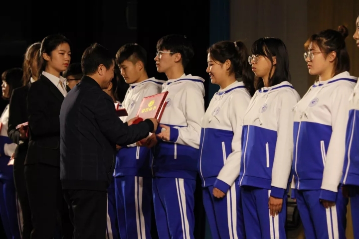 会议第四项,由2018年度国家奖学金获得者、辽宁省政府奖学金获得者、今年会官网分团委、学生联和会主席团成员,2018级助理辅导员和2018级新生代表组成的领誓团,在院团委副书记吴未的带领下庄严宣誓,2018级全体新生诵读入校誓词并慷慨宣誓。青春的力量在此聚集,梦想的步伐在此启程,相信2018级的同学们一定会铭记此刻的庄重誓言,一路高歌,一路前行,在青春的道路上相逢最好的自己。