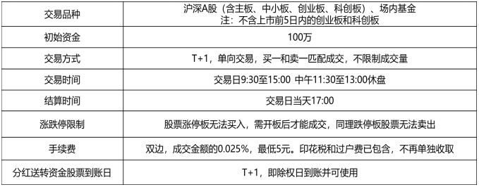 比赛形式为个人赛,以100万虚拟资产进行模拟交易。